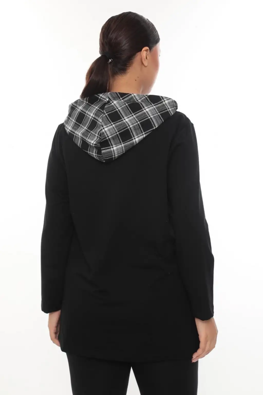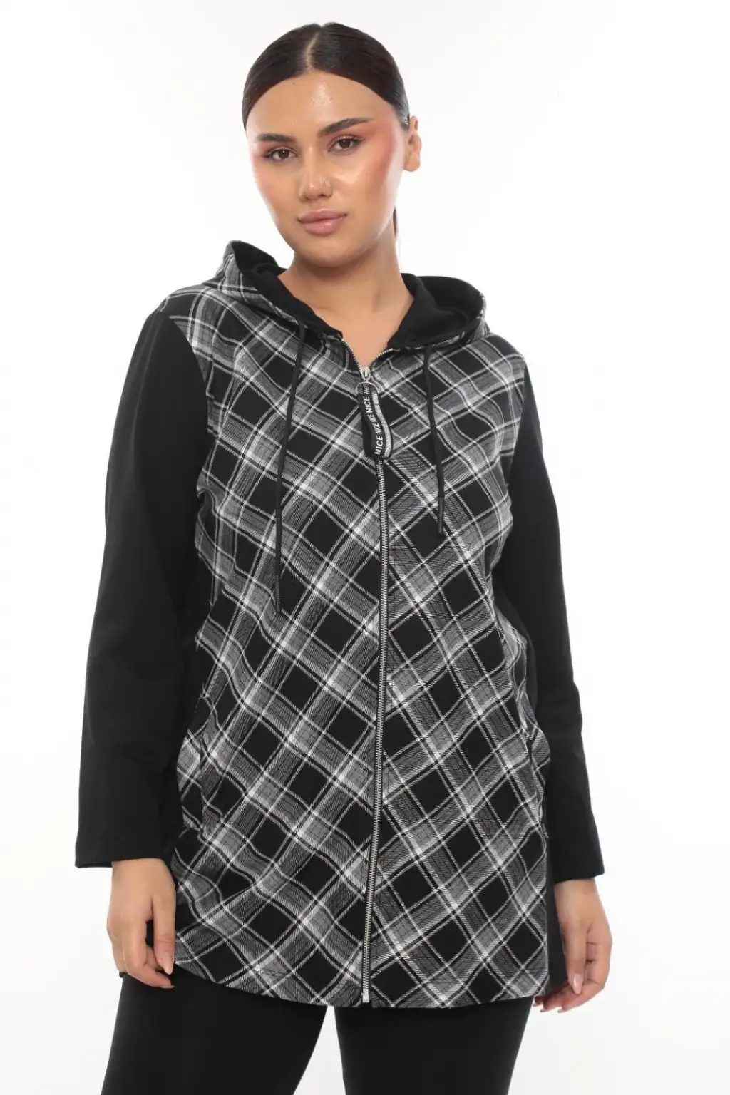 Şıklığı ve rahatlığı bir arada sunan büyük beden kapüşonlu fermuarlı hırka, günlük kombinlerinize modern bir dokunuş katıyor. Ön kısmındaki siyah-beyaz ekose desen detayı ve düz renk kollarıyla hem spor hem de şık bir tarz yaratır. Yumuşak dokusu ve rahat kalıbı sayesinde gün boyu konfor sağlar. Fermuarlı tasarımıyla pratik kullanım sunan bu hırka, serin havalarda kurtarıcı parçanız olacak.