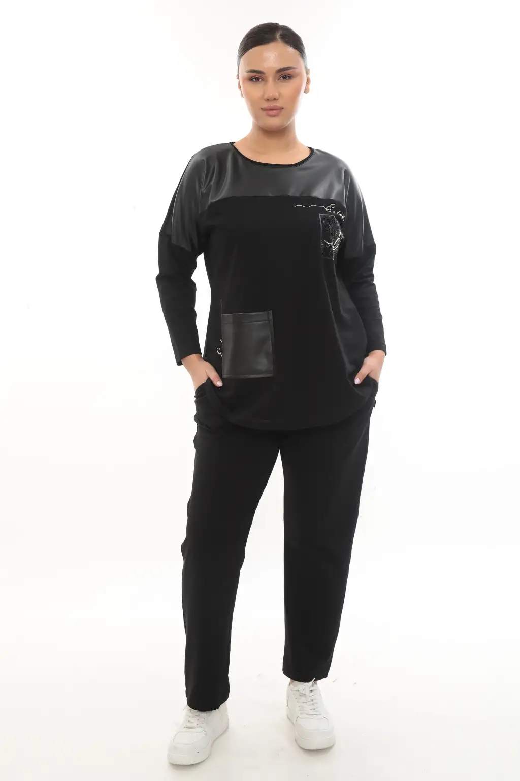 Rahatlığı ve şıklığı bir arada sunan büyük beden kadın siyah eşofman altı, %75 pamuk içeriğiyle yumuşak bir dokuya sahiptir. Gün boyu konforlu kullanım sağlar ve esnek yapısı sayesinde hareket özgürlüğü sunar. Lastikli beli vücuda tam uyum sağlarken, yan cepleri pratiklik kazandırır. Hem günlük kullanımda hem de spor aktivitelerinde tercih edebileceğiniz bu model, sade ve modern tarzıyla dolabınızın favorisi olacak.